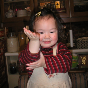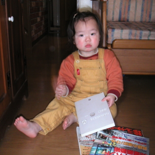 もうちょっと小さかった頃は自分を見ても、「赤ちゃんだ!」と、よそのコの画像だと勘違いしていたのだけど、最近は自分だと認識してみている。「小さいハルちゃんだよね?」と、私に確認しながら、ニコニコして見ている。生まれたばかりであんまり小さいので、洗面台で沐浴している自分を見て、お風呂場以外で、お風呂に入っているのがおかしいとか、自分で食事をしはじめたばかりで、へたくそなのがおかしくてしょうがないらしい。(笑)