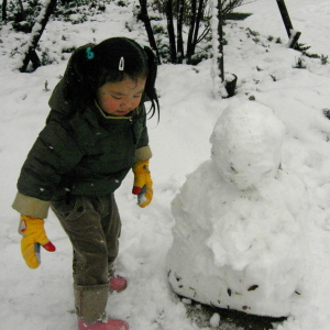夜、寝るとき、「ユキちゃん、まだいるかな? だれかに壊されちゃったかな?」と、雪だるまのことを心配していました。