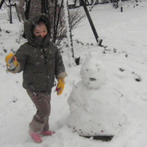 雪が降ってうれしいのは、もちろんハルカです。朝から窓の外を見ては、うれしそうに「ママ、お外で遊ぼう! 雪だるま作ろう!!」と、誘ってきます。