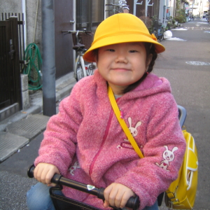 ハルカは楽チンだし、1種のアトラクション気分で、そりゃもう大喜びです。幼稚園に自転車に乗せてきてもらっているお友達を「いいな、いいな。」と横目で見ながら歩いて通園していますから。