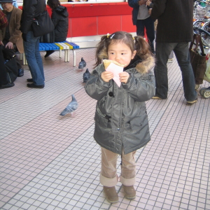 上野公園にくると松坂屋が近いことをハルカはわかっているので、「ママ、なんかおいしいものあるか、見に行こうよ♪」と誘います。デパ地下での買物が目当てというより、本心は屋上で遊びたいということです。夕方でもう寒いから、屋上でちょっとだけ遊ぶことにしました。