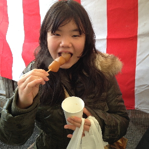 ハルカは玉こんにゃくが大好き! 熱々のをおいしそうに食べていました。