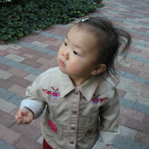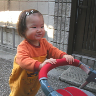 もともとスリル系の遊びが好きなだけに、だんだんおてんばぶりがエスカレートしてきて、生傷が絶えなくなってきました。すぐにタンコブできる体質なので、女の子の顔なのに、タンコブできてます・・・。