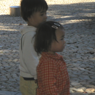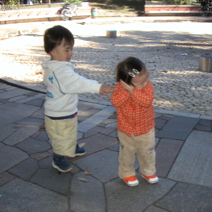 買物のついでに公園に行った。夏、プールに変身していた、今はもう水がない噴水の所がぱるぱるのお気に入りの遊び場。今日は、ぱるぱるよりもちょっと大きい男の子がママと一緒に遊んでいた。
