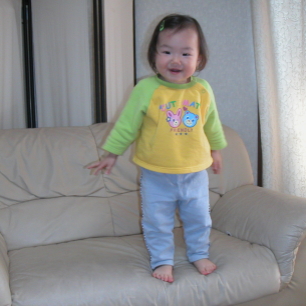 あーやんのママに自家培養のカスピ海ヨーグルトのタネを届けに行って、ぱるぱるはあーやんと遊びました。あーやんちの壊れたデジカメでセルフフォトの撮影(?)をしたり、しまじろうのビデオを見せてもらって、最初はおとなしく遊んでいましたが、ソファーでジャンプしたり、飛び降りるという遊びをあーやんと始めて、エキサイト。