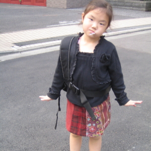 幼稚園にはズボンを穿かせていっていますが、ブリブリのハルカはスカートが大好き。帰ってくるとすぐにお着替えします。