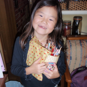 帰ってきたと思ったら、色エンピツをとりにきただけ。また今晩も泊まるんだって。