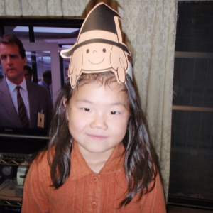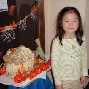 学校の英語の授業でハロウィンをやってようで、ヤマハに迎えに行ったら、ハルカの頭にハロウィンの被り物が。先生によるとレッスン中もずっと被っていたとか。