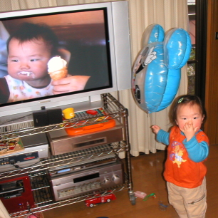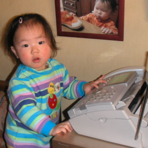 ぱるぱるのインチキ日本語も「2音節」を付けて話すところまで進化しました。電話でも「もしもし、ハルちゃんです!」なぁーんてやってます。すっかりオモチャの電話には興味を持たず、ホンモノの電話かケータイで、お話しているフリして遊んでいます。オモチャを渡すと、はっきり「イヤ!」と拒否されちゃいます。(笑)