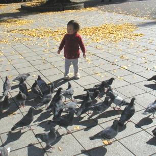 落ち葉が面白いらしくて、公園に行くとブルドーザーに変身したかのように大量の落ち葉を集めて喜んでいます。「そこに山があるから上る」っていう感じで、山とか坂道、階段がダイスキ。オトナだったら、できるだけ避けるのにね。坂道を見つけた日にゃ、エンドレスで上り下りが始まっちゃって、なかなか用事がおわりません。