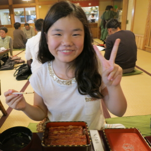 ずいぶん遅くなっちゃったけど、おばあちゃんがパパのお誕生日のお祝いということでうなぎをごちそうしてくれることになりました。