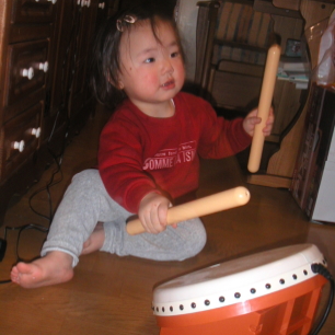 最近はダンスの時に、小道具持参になったので、「あ・い・う・え・おにぎり」の時はおままごとのおにぎりを、フラダンスの時は(なぜか)私のアームバンドを持ち出し、踊っています。気分がぐんと盛り上がるらしいです。