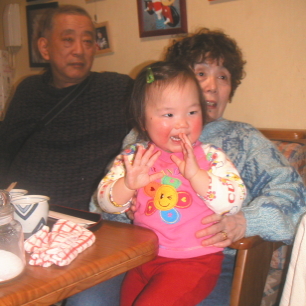 お年は早めに年越しそばを食べることにして、ぱるぱるの大好物の海老のてんぷらも用意。なんてったって、海老娘ですから、海老さえあれば、ニコニコ。おじいちゃん&おばあちゃんも呼んで、一緒におそばを食べながら紅白を見ました。モー娘やNHKのキャラクターが出てきたら、一緒にダンスしまくりの大はしゃぎ。ありがとう、NHK! ぱるぱるは満足したようです。