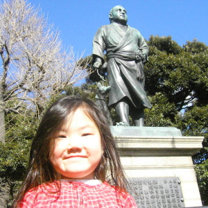 左)西郷さんの前で写真撮ってきたのね?