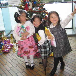 合唱隊からもお友達のエリちゃんのママからもクリスマスプレゼントをいただいて、ニッコニコ。(もちろん、サンタクロースのプレゼントは、朝、枕元にありました。)
