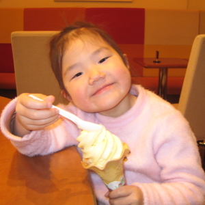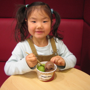 北千住でいいかぁ〜と、駅ビル周辺で遊ぶことに。こんな寒いのに、ハルカはアイスの山盛りを食べたがる。やだよ、ママは熱〜いコーヒーが飲みたいよ。