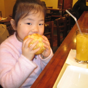 いっぱい歩いたから、ハルカの好きなもの、食べさせてあげるか〜、って私が甘いか。(笑)