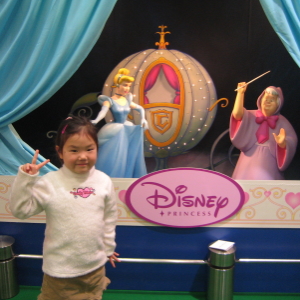 地下鉄口から入ると、目の前にディズニー・プリンセスの催し物を開催中のポスターが。目ざとくハルカに発見されてしまい、まずは催し物会場に直行。