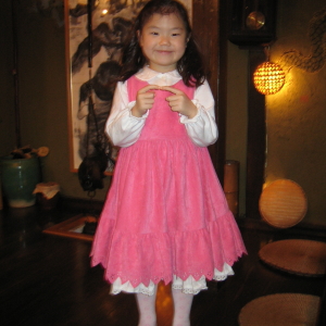 ハルカは以前、このお店の前を通ったときに看板の「大長今」にすぐに反応して、「ママ、ここのお店、チャングムってかいてあるよ。」と、興味を持っていました。