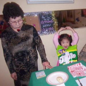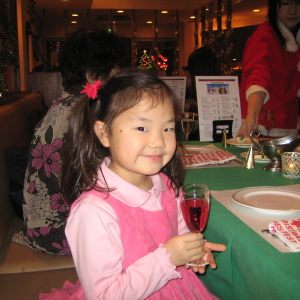 今日は、ばあばも誘って、お気に入りのレストランのクリスマスパーティーに行きました。ビンゴ大会もあるし、6人行けば誰かが当たるといいながら出かけたのですが、なんと、1等の松阪牛すき焼き肉は逃したもの、2等から5等まで、3つも当ててしまいました。うちの家族がみんな当てちゃったので、他のテーブルのみなさんに申し訳ない結果になってしまいました。ハルカも景品を見たときから狙っていた5等の「でっかいカール」をまんまとゲットして大喜び。おじいちゃん、パパも活躍して、お料理の代金が1人か2人分チャラになっちゃったかも。