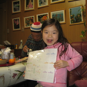 夏休みの終わりにハルカが描いた絵をコンクールに出品していたのをすっかり忘れていたのですが、入賞したとかで、ハルカの絵がカレンダーになっていました。カレンダーになっていると立派な作品という感じです。
