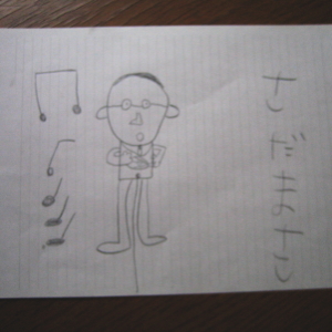 急に「お絵かきしていい?」と言い出し、何を思ったか、アンジェラ・アキの似顔絵を描き始めました。それから、歌手が歌っている間に似顔絵と名前を描いて、描いて、描きまくるハルカ。それが結構似ているから大笑い。衣装の感じや歌っている表情までよく見ているものです。傑作だったのは、「さだまさし」と布袋まで書き込んだ「今井美樹」。よく布袋がセットなのがわかったね。
