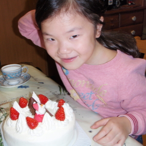 ホールのケーキを1/6ずつにカットしたのですが、ショーケーキフリークのハルカが2切れ食べちゃう勢いでした。