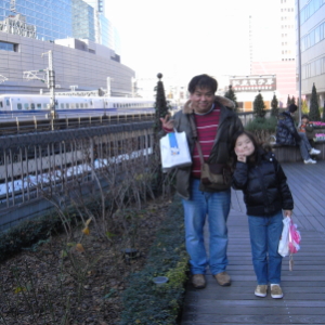 交通会館の3階のテラスは穴場中の穴場。だれもいなくていいよ。帰省客を乗せた新幹線が山手線並みのダイヤで走っています。