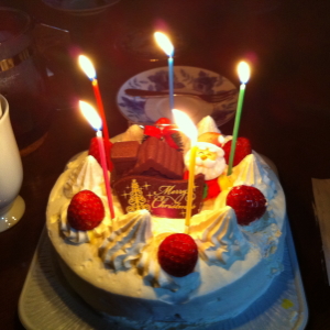 晴れ(13.6/4.1)おばあちゃんちでクリスマスパーティーをしました。