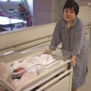 朝の5時半に看護婦さんに呼ばれて、赤ちゃんを新生児室に迎えに行った。病院の朝は早いよね。
