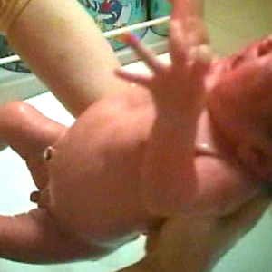 まぁ、今日はウォーミングアップってことで、ざっとやってみた。私が悪戦苦闘してる、この戦争の最中、初沐浴の様子をビデオ撮りしてるダンナって、いったい・・・。