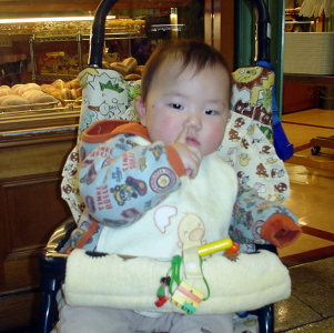 ぱるぱる、1歳になりました。ここまで、長かったような、短かったような。バースデーパーティーは土曜日の明日、やることになっていて、今日は堀切のばあばが、プレゼントを買ってくれるというので、松坂屋にきました。お洋服、って言われたけど、そろそろアンヨしそうなので、自分では高くて、なかなか手が出なかったミキハウスの靴を買ってもらいました。