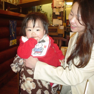 確かに4時から売り出したんだけど、整理券をもっている人が優先で、待つわ、待つわ。ぱるぱるが退屈しないようにハードロックカフェのおねえさんが、商品のクマのぬいぐるみを貸してくれた。ぱるぱる、とても気に入ったらしく、離さないのよね。おねえさんと遊んだりして、イイコで1時間も待ってくれたのだけど、パンダをゲットするころには、クマはぱるぱるのヨダレで濡れてる。買わないかけにいかないじゃん。(笑) そんなわけで、パンダとクマを買って帰りました・・・。