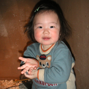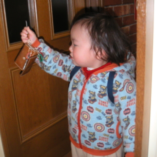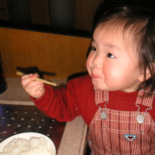 お料理も興味津々で、もうおままごとでは満足できないところまできています。最近ではおコメをといだり、おにぎりを作ったりしてがんばっています。サランラップにご飯を包んで、握らせていますが、自分で作ったのはうれしいらしく、作った分だけ、喜んで全部食べます。