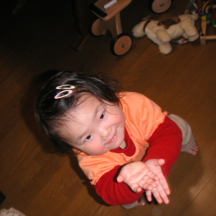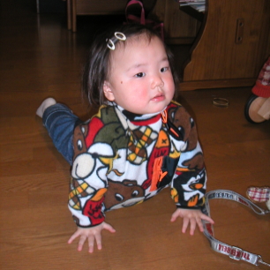 テレビのコマーシャルの影響って、やっぱりすごいと思う。真似っこ大好きのぱるぱるは、オムツのCMを見て、ハイハイしながら、「赤ちゃんだよ。」と得意げにやってる。おいおい、あんたはハイハイのできない子だったのよ。今ごろ出来てどうする?(笑)