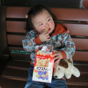 「赤ちゃんの時に好きだったお菓子をママに買ってもらったの。