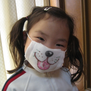 「うさハナかキティーちゃんのマスクが欲しい!」と言われたのですが、わざわざでっかいスーパーやサンリオまで行くのが面倒だったので、近くのドラッグストアで買った白いマスクに落書きしてあげました。ワンワンバージョンとブタさんバージョンがあります。パパの力作です。けっこうかわいいよね?