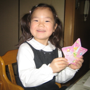 ハルカの誕生日(22日)が平日なので、今日、早めにバースデーパーティーをしました。ハルカの希望でお料理はステーキ。私達からはすでにDSをもらってしまったので、特にプレゼントはあいませんが、おじいちゃん、おばあちゃん、そしてばあばからカードとお祝いをもらって、うれしそうでした。