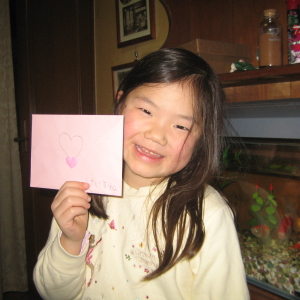 ケイスケくんにチョコ渡したいといっていたので、学校でケイスケくんに住所を聞いてくるように言っておいたのですが、どうやらケイスケくんは自分ちの住所をしらないらしく、ハルカの自由帳に学校から自分ちまでの地図を描いてくれました。