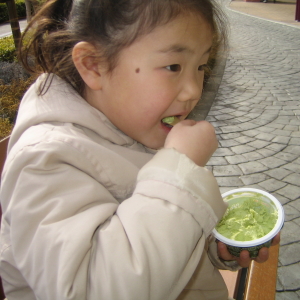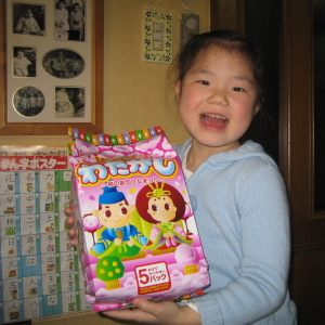 スーパーに買い物に行くと、さっそく「おひなさまコーナー」にあった綿菓子に目をつけたハルカ。「おひなさまに飾ってあげよう!」と言って買ってきましたが、飾る間もなく、ハルカのおなかに入りました。