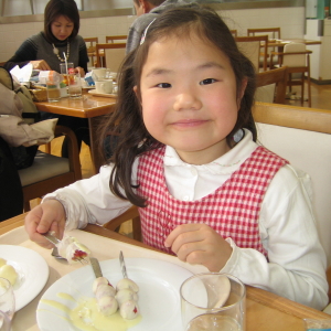 お食事の後、アンケートにしっかりとそのことを書いていたハルカ。「おりょうり、おいしかったです。でもかごがたかくて、おりょうりがたべづらかったです。もうすこしひくくしたほうがいいとおもいます。」だって。(笑)