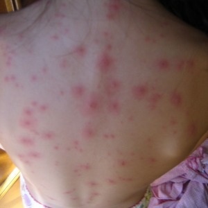 昨日の朝、学校に行く前に「ママ、背中がかゆい!」と言うので見ると、なにやらアセモのようなものが点々と。ハルカは冬でもアセモになる子なので、またいつものやつだろうと、アセモのクスリをつけて、そのまま学校に行かせました。