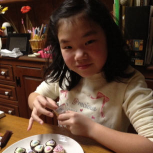 今年は、シリコンの型を買ってあげて、板チョコを溶かして流し入れるという方法にしました。