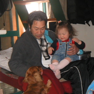 左下)DONDONのおじちゃんといっしょにルーちゃんと遊んだよ。