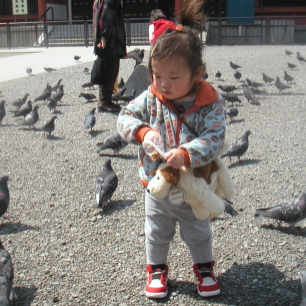そろそろ餌付けがしたくてウズウズしているぱるぱるを連れて浅草まで行ってきました。100円の豆を買ってあげると、ママになったつもりで、「ポッポ、マンマですよ。」と一生懸命撒いてるんだもん。