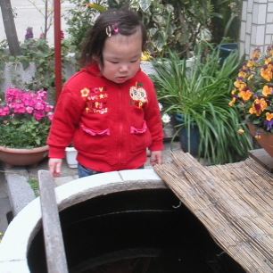 今日思わず、「やるな、こいつ!」と思ったのは、あーやんの家に向かう途中、「ママ、あそこに金魚がいるんだよ。」と、言ってよそのおうちの庭先に入っていったこと。