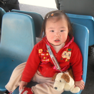 妹のたかちゃんに「一瞬芸」をいろいろ仕込まれたみたいで、自慢気に「あい〜ん」とか「シェ〜」をやってました。(古すぎるよ、芸が・・・・。)