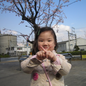 パン屋さんで、春らしいピンク色の小さい「さくらアンパン」を見つけました。ハルカも欲しいというので買ってみました。
