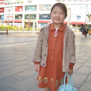ハルカはブルーのかわいい鈴が気に入って、パパに買ってもらいました。ランドセルにつけるんだって。