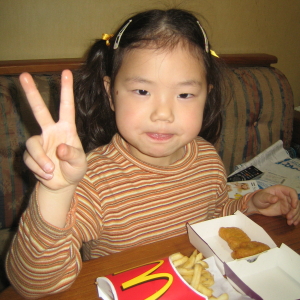 そうだ、ちょっと難しいお手伝いをしてもらおう。ハルカにマクドナルドにハンバーガーを買ってきてもらうことにしました。信号を渡っていくおつかいは初めてです。ちょっと心配でしたが、何事もチャレンジ。